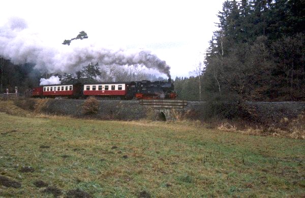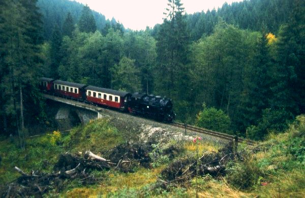 Talwärtiger Zug mit Lok 99 6001 im Behretal