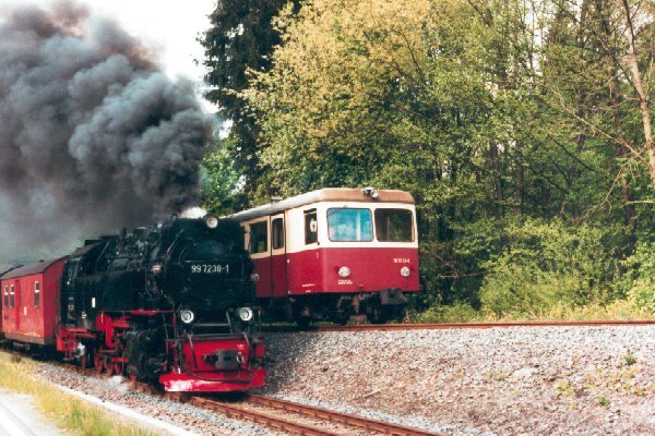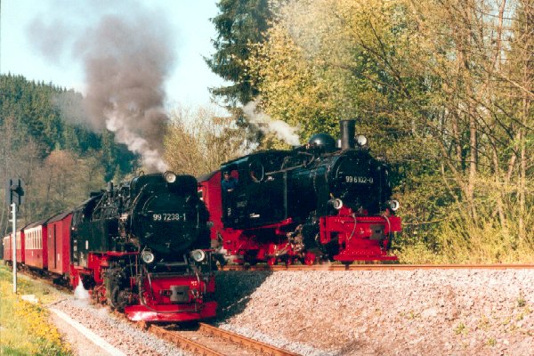 Doppelausfahrt mit "Neubaulok" 99 7238 und "Fiffi" (Lok 99 6102) Foto: Heiko Fricke Vergrößern 60,4 KB |