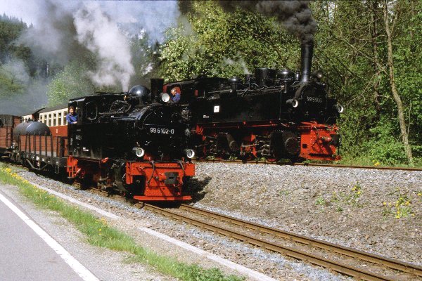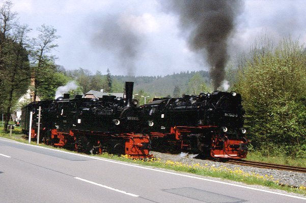 Doppelausfahrt mit 99 5906, 99 6102 und 99 7242 Foto: Klaus Gottschling Vergrößern 65,9 KB |
