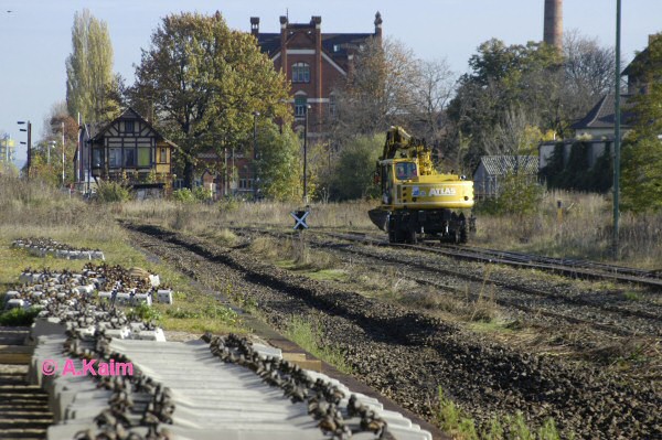Zweiwegebagger bei den Arbeiten zum Gleisabbau (03.11.2005)