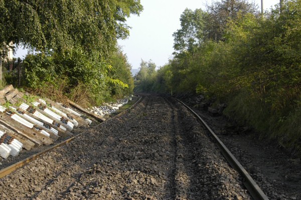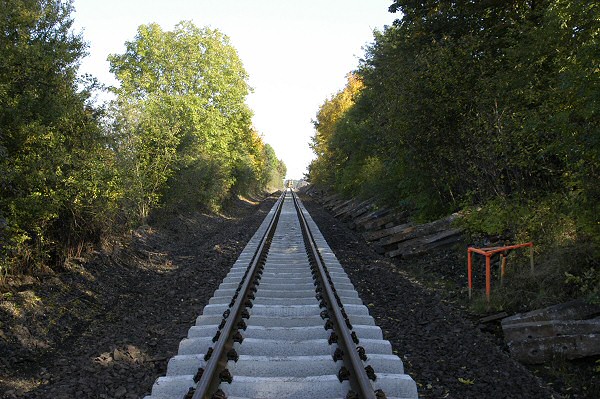 neu verlegte Schwellen und montierte Schienen zwischen Gernrode und Bad Suderode (12.10.2005)
