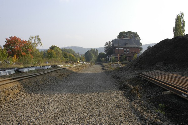 Hp Bad Suderode mit vorbereitetem Gleisbett zum Verlegen der Schwellen (07.10.2005)