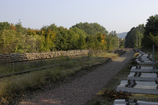 zum Schwellenverlegen vorbereitetes Gleisbett Höhe  Bückemühle (07.10.2005)