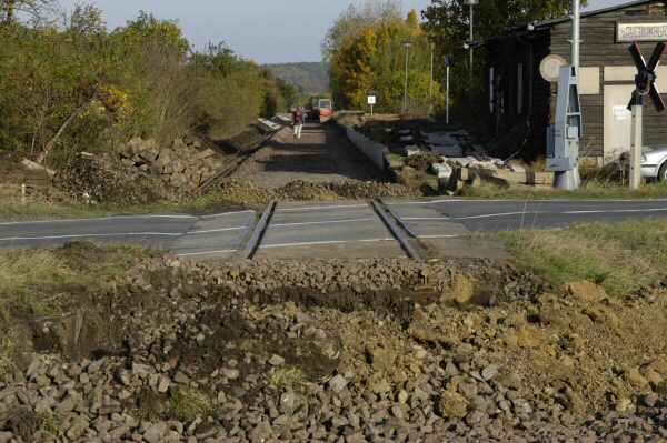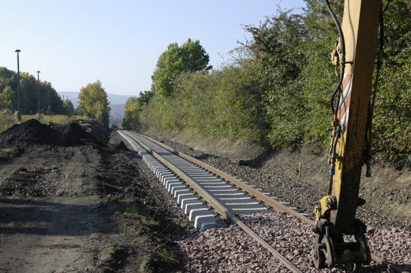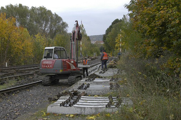 Gleisverlegung im Haltepunkt Bad Suderode (25.10.2005)