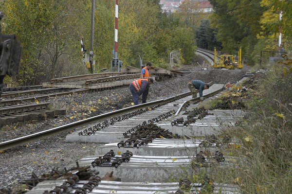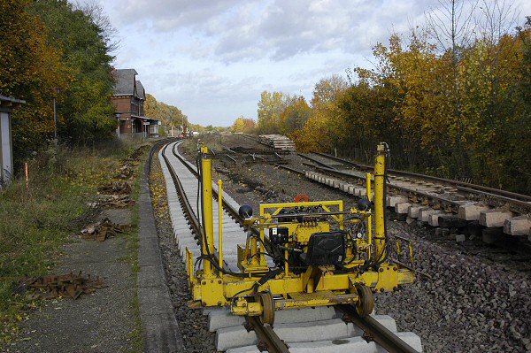 Im Haltepunkt Bad Suderode werden die Schwellen verlegt (25.10.2005).