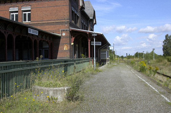 Blick von der Gleisseite auf das Empfangsgebäude des Bahnhofs Bad Suderode im Mai 2005