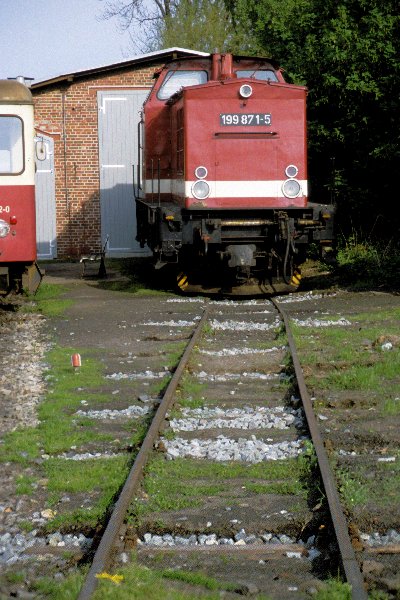 Am 9. Mai steht Lok 199 871 auf dem ausgebesserten Gleis.