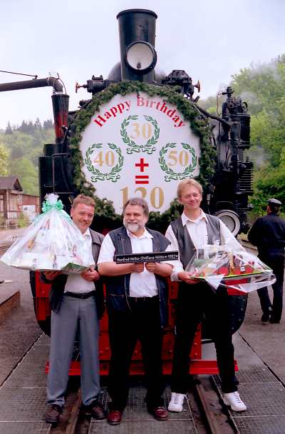 Die Jubilare präsentieren sich vor 99 6102 ("Fiffi").