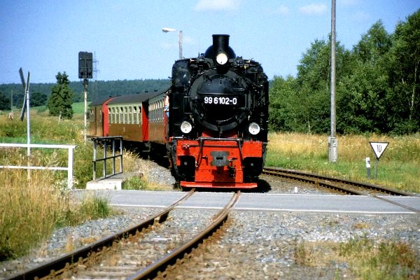 Am Folgetag (28.07.2002) war der Brocken nochmals Ziel eines Sonderzuges aus Gernrode. Lok 99 6102 brachte ohne Probleme alleine den kleinen Zug auf den höchsten Berg des Harzes und zurück. Bei dem schönen Sommerwetter nutzten viele Fahrgäste die Gelegenheit zur Mitfahrt im "Schienencabrio" (offener Aussichtswagen).
