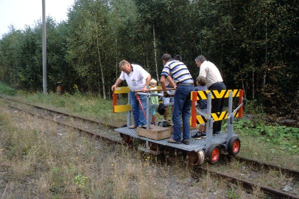 Festgäste fahren mit der Handhebeldraisine im Anschluß Heizwerk Foto: Klaus Gottschling Vergrößern 78,0 KB |