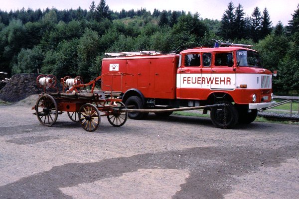 Auch der "Fiffi" stand im Blickpunkt des Publikums. Er wurde von sechs Feuerwehrleuten mittels eines von Pferden gezogenen Löschzuges mit Wasser versorgt.