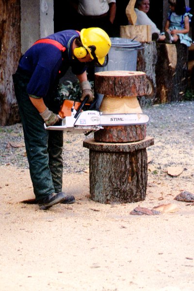 Forstlehrling beim "Schnitzen" mit der Motorkettensäge Foto: Klaus Gottschling Vergrößern 62,7 KB |