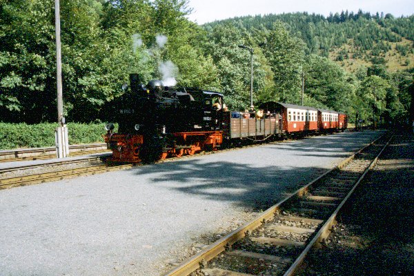 In Schierke wartete Planzug 8937 auf die Kreuzung. In Drei Annen Hohne wurde auf Gleis 3 eingefahren, so daß nach Schichtwechsel des Lokpersonals und Umsetzen der Lok vom selben Gleis Richtung Elend abgefahren werden konnte.