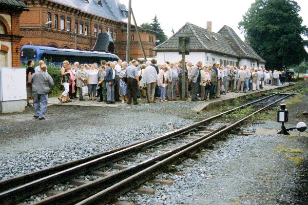 Fahrgäste des Charterzuges auf dem Gernröder Bahnsteig