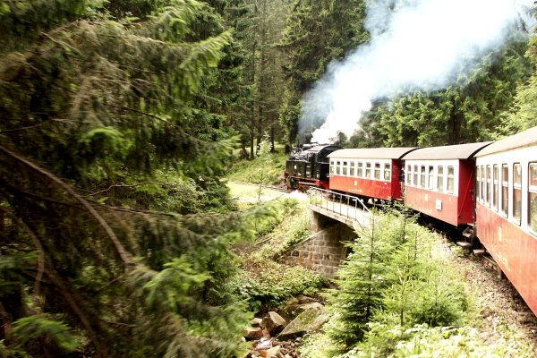 An der Färbung der Laubwälder im Selketal konnte man schon den bevorstehenden Herbstanfang erahnen. Zunächst hätte man meinen können, der Sonderzug sei der einzige Zug weit und breit, da es durch die Fahrplanlage keinerlei Zugbegegnungen gab. Das änderte sich aber in Drei Annen Hohne. Aufgrund der Überholung durch den Planzug 8920 aus Nordhausen und der Kreuzung mit dem Planzug 8926 vom Brocken fanden im Bahnhof Schierke wieder die für Außenstehende interessant anmutenden Rangiermanöver des Sonderzuges statt.