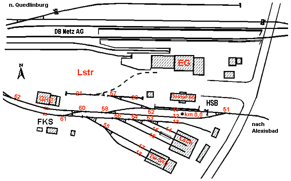 Gleisschema des Bf Gernrode (Ostteil) bis 2004 Zeichnung: Klaus Gottschling Vergrößern 21,9 KB |