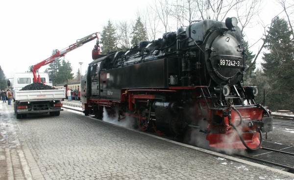 Bekohlung der Lok 99 7242 nach Tausch mit 99 7243 Foto: Andreas Kaim Vergrößern 68,7 KB |