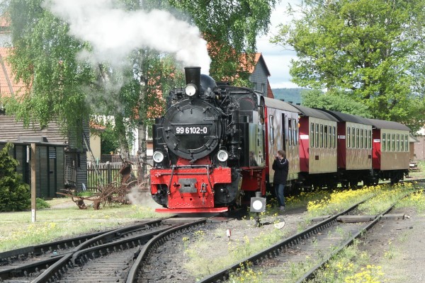 Nach erfolgter Kesselreparatur und Wiederinbetriebnahme (am 30.04.) kam Lok 99 6102 ("Fiffi") bereits mit dem Walpurgis-Sonderzug und für eine Charterfahrt am 1. Mai (siehe Meldung vom 30.04.2004) zum Einsatz. Nur eine Woche süäter gab es für die Lok die nächsten Aufgaben. Am 07.05. (Fr) und am 09.05. (So) fanden Charterfahrten statt, die von Firmen beim Freundeskreis Selketalbahn e.V. (FKS) gebucht wurden.