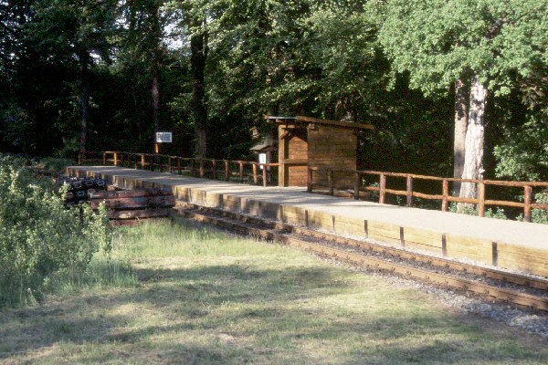 Verschiedenen Personen (z.B. dem Streckenmeister Herrn Gatzemann, dem Abteilungsleiter Verkehr vom Landkreis Quedlinburg - Herrn Wendt und dem Forstamt) ist es zu verdanken, daß die Bahnsteigkante statt aus Betonteilen traditionell aus Holzbalken und Schienenstücken hergestellt wurde. So ergibt sich ein gefälliger Anblick des von Wald umgebenen Haltepunktes.