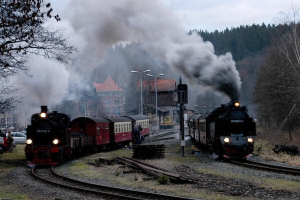 Doppelausfahrt aus dem Bf Alexisbad Foto: Andreas Kaim Vergrößern |