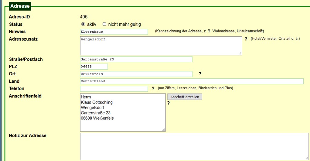 Bild 2: oberer Teil des Formulars zum Zusammenfassen von Aressdaten