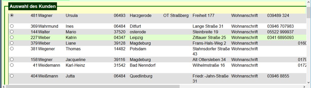 Um die Länge der Formulare zu begrenzen, werden mitunter Listen nur in einem schmalen Bereich mit Rollbalken angezeigt. Durch Klicken in die Liste wird die Höhe des Anzeigebereichs vergrößert bzw. verkleinert (s. Bild 3 und Bild 4).