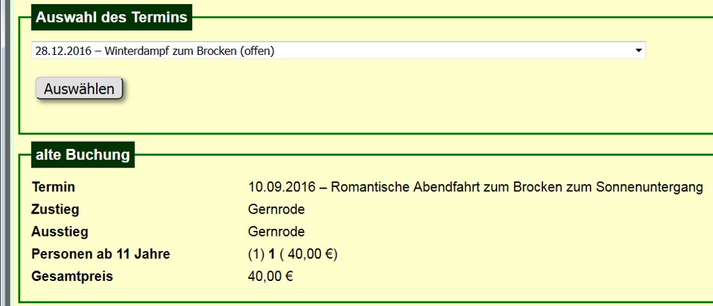 Abhängig vom ausgewählten Bearbeitungsstatus werden Plätze/Fahrkarten zum neu gewählten Termin reserviert.