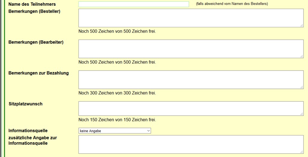 Die Angabe zur Informationsquelle, über erlche der Besteller von der Veranstaltung erfahren hat, ist nützlich, um die Wirksamkeit der verschiedenen Werbewege des Vereins zu bewerten.