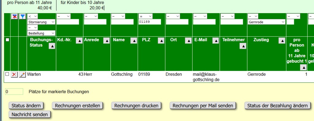 Nach Auswahl eines anderen Termins oder Anklicken des Schalters wird die WWW-Seite mit der zum Termin gehörenden Buchungsliste erzeugt.