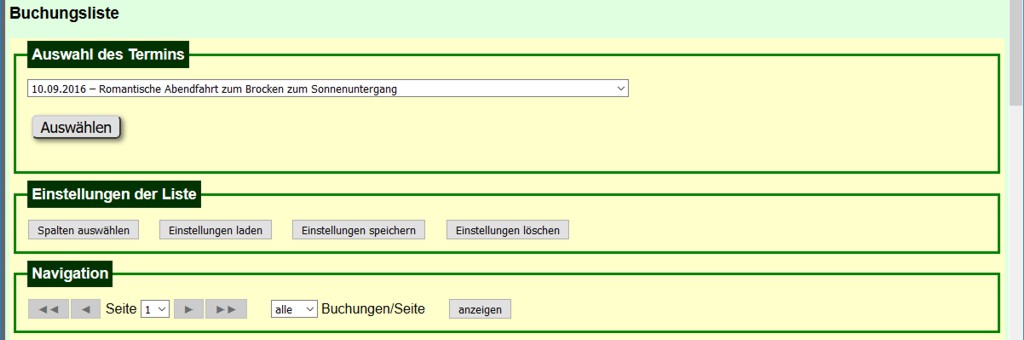 Wenn nicht es nicht explizit erwähnt ist, geht es um die Buchungsliste für Veranstaltungstermine.