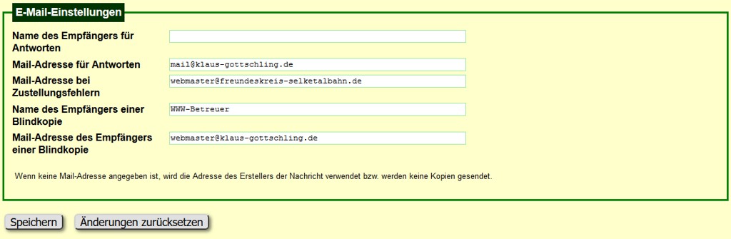 Wenn eine Mail-Adresse für Antworten eingetragen wird, gehen Antworten auf die Nachrichten an diese Adresse statt an die Mail-Adresse des Bearbeiters.